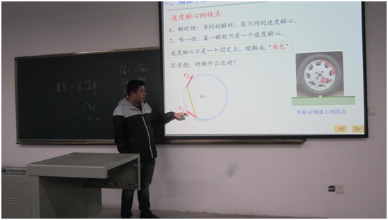 尹长城副教授讲授的是《理论力学》之刚体平面运动的速度分析。首先,应用课程动画,形象生动地引出速度分析的三种方法;然后,针对刚体平面运动的速度瞬心法,使用分析综合、抽象概括和推理证明的方法来讲授;最后,通过侧放停车的小例子,体现了力学的速度分析方法在实际生活中的应用。另外,他还提到,在力学课程教学中不仅讲究严谨的逻辑论证,还遵从由简单到复杂、从局部到整体的发展规律。