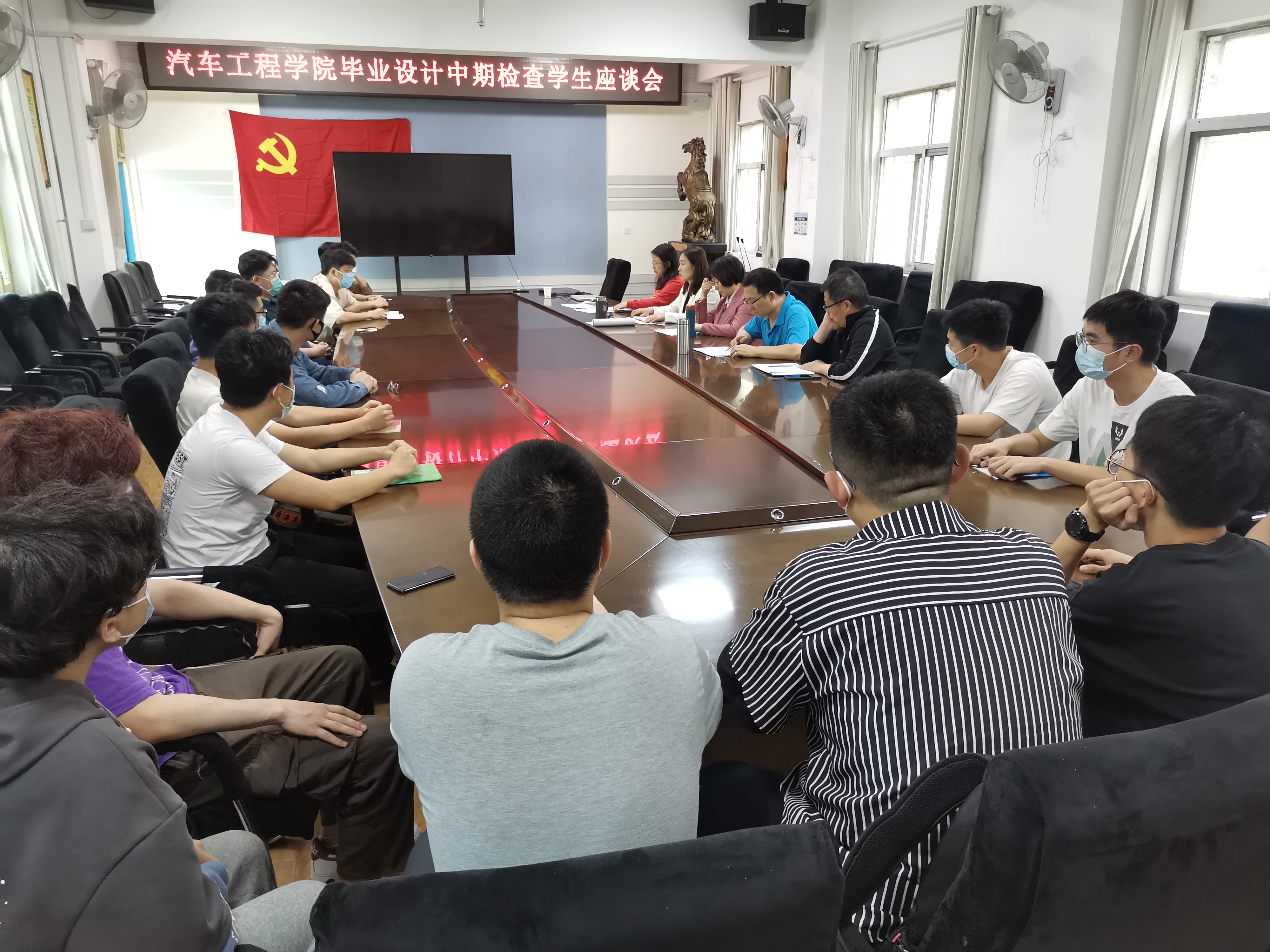 于第8-9周进行了毕业设计中期进度反馈与自查工作,并于4月27日下午召开了毕业设计中期检查学生座谈会。座谈会随机抽取了20位学生代表,由学院教学质量监控委员会成员5人分成两组对学生进行座谈。