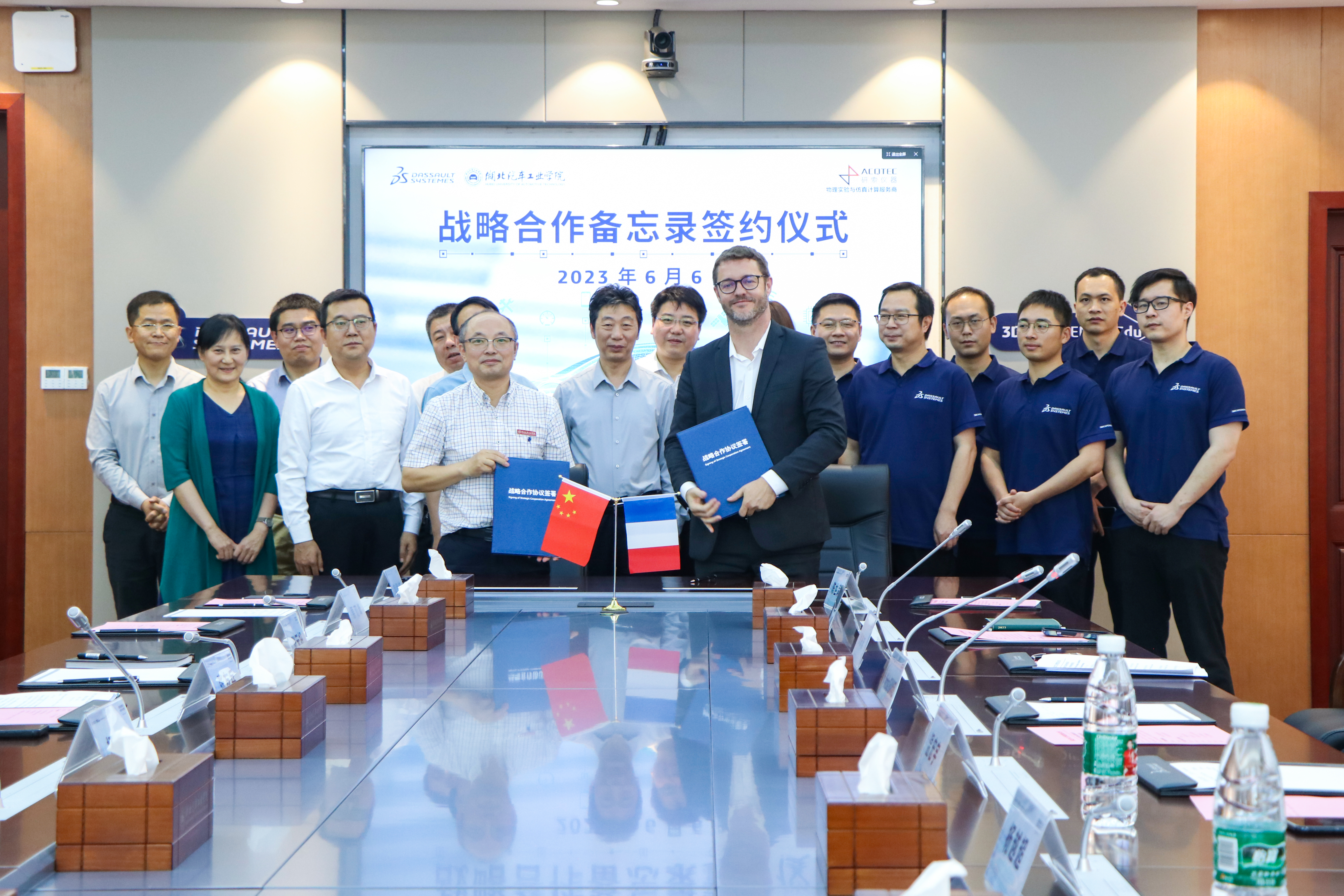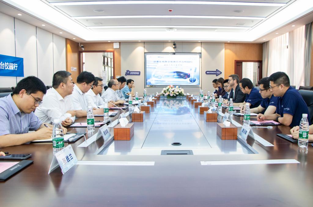 张友兵代表学校向达索公司一行的到来表示了热烈的欢迎,随后简要介绍了学校概况、学科优势、数字化平台建设的发展现状,表达了与达索公司进行深度合作的意愿。张友兵说,希望未来能结合汽车产业数字化转型,与达索公司在3DExperience平台建设、新技术应用、数字化人才培养等方面进一步深化合作,推动共赢。达索系统教育合作部全球高级总监Nicolas JEANNEE博士表示,非常乐意与学校开展多维度合作,愿意为学校课程建设等提供软件等支持,也期待学校的产教学研新成果及时转化应用,进一步推动现代化车企的转型和双方可持续发展。