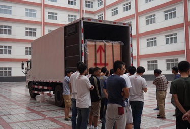 在HUAT车队工作室后面的场地上,摆放着一只精美的大箱子,这只箱子是队员们亲手制作的,赛车将被装入箱子中运走。队员们有条不紊的将赛车以及其它物品装箱,每个人都忙的不亦乐乎。