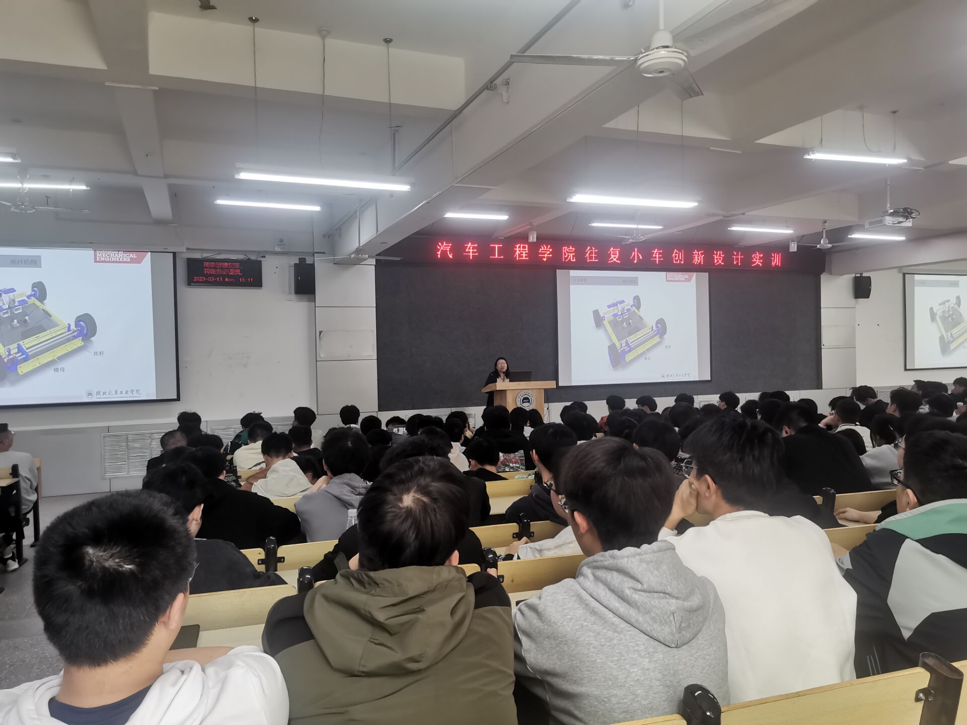 往复小车创新设计实训开课动员会在6113教室如期举行。会上,郑冬黎老师详细介绍了项目内容、实训流程、项目经费、成绩组成等方面内容。郑老师还播放了上几届学长小车比赛的视频,同学们看到这些形式各样的小车,稳稳的准确回位时,不禁发出佩服的惊呼声。接着,上届学长的4支电控组和4支机械组分别上台分享了项目的实施和体会,用自己小组的实际经历为同学们总结经验,最后,智能车队的队长为大家介绍了电控方式的几个技术模块,要学习的内容。听了学长们的分享,看了往年比赛的照片和视频资料,学生们对这个项目逐渐自信,都跃跃欲试,想做出自己的小车,表现出高涨的学习热情。