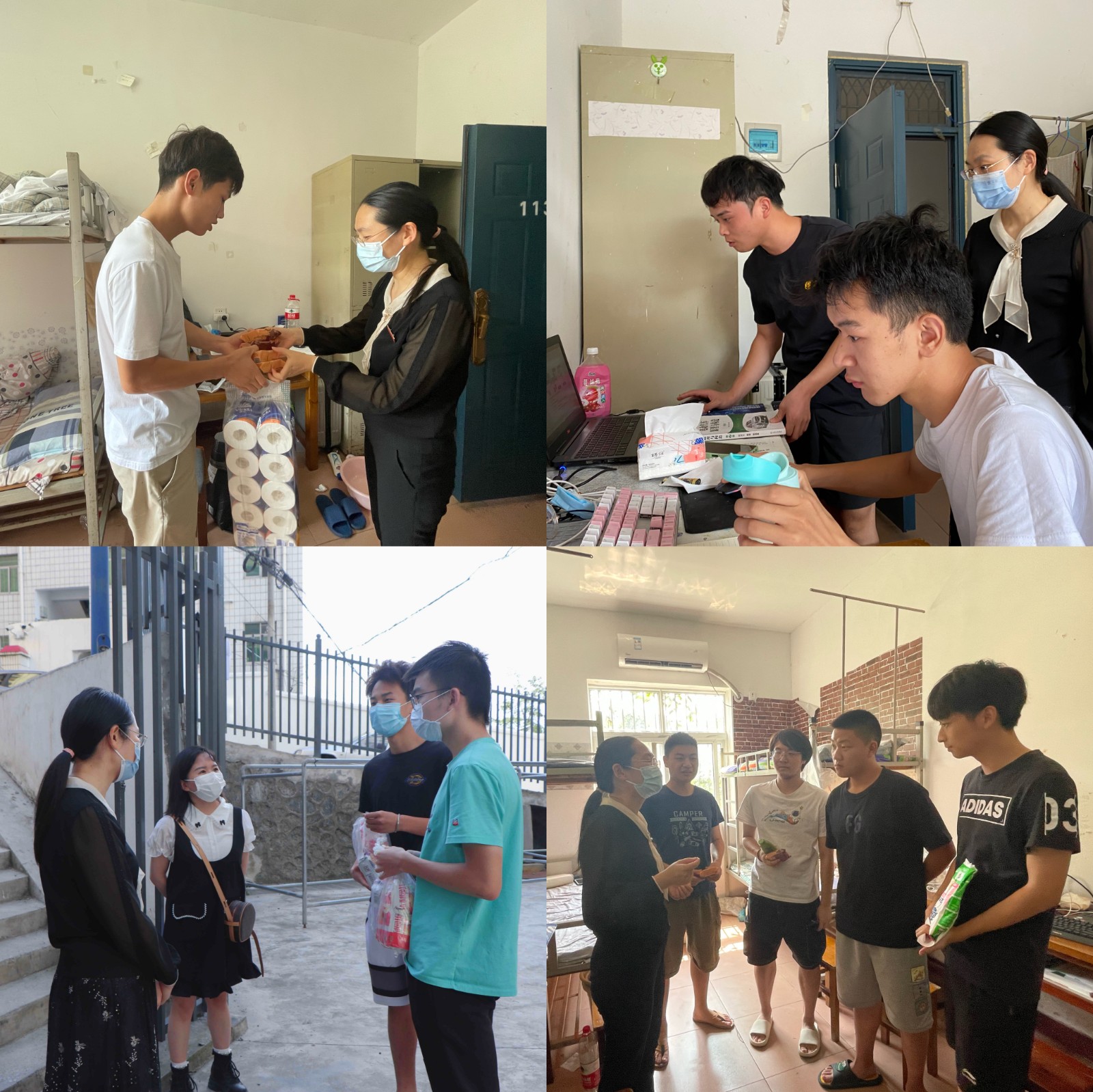 分党委副书记杜昕俊带领学工办主任胡霄寒、辅导员李旭、甘甜赴学校疫情防控集中监测点和西区一栋公寓对积极配合学校防控工作的学生们进行走访慰问。