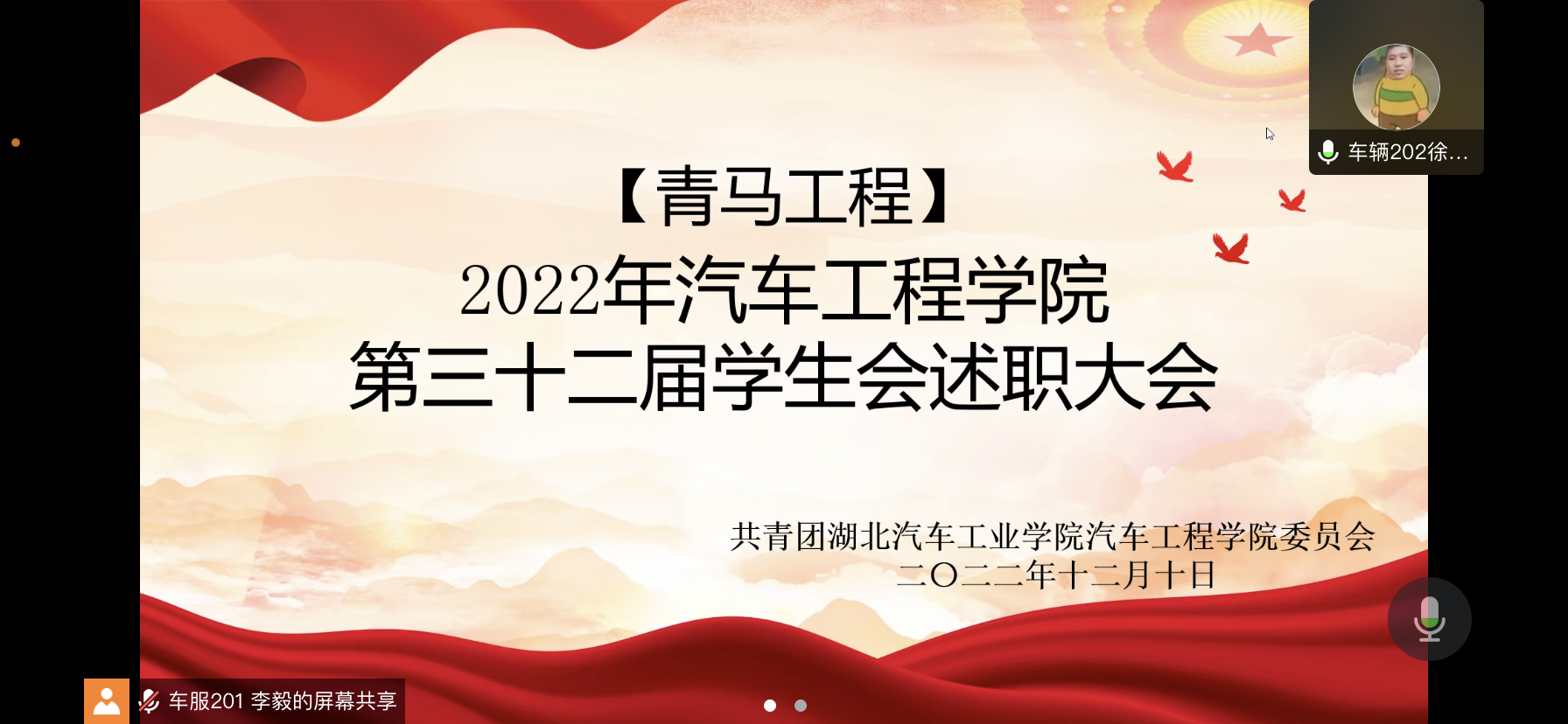 组织召开了2022-2023学年(上)第三十二届学生组织述职大会。会议以线上的形式进行,辅导员李键雯、第三十二届学生组织全体成员以及部分学生代表参加了此次会议。