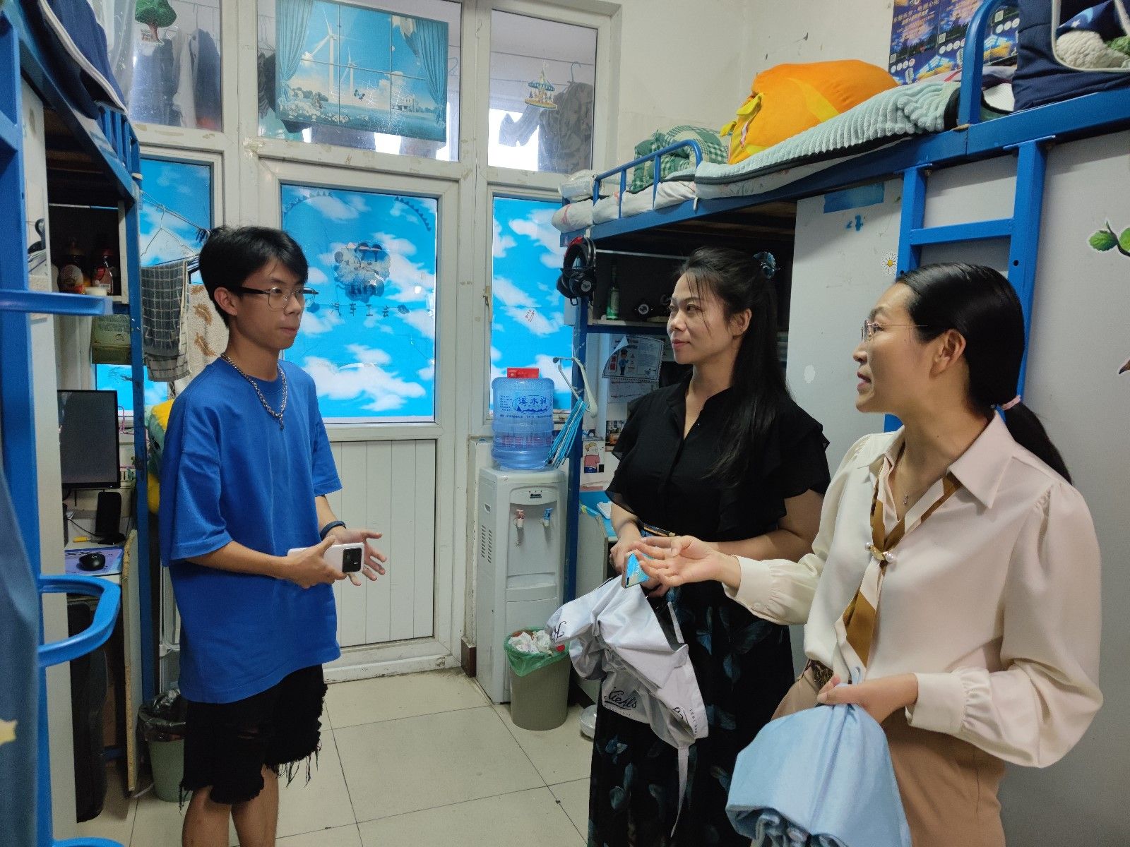 分党委书记杨亚会、副书记周彬及全体辅导员分批走访慰问学院留校学生,进一步了解暑期留校学生的学习生活情况,坚定考研学子的备考决心,表达学院的关心与关怀。