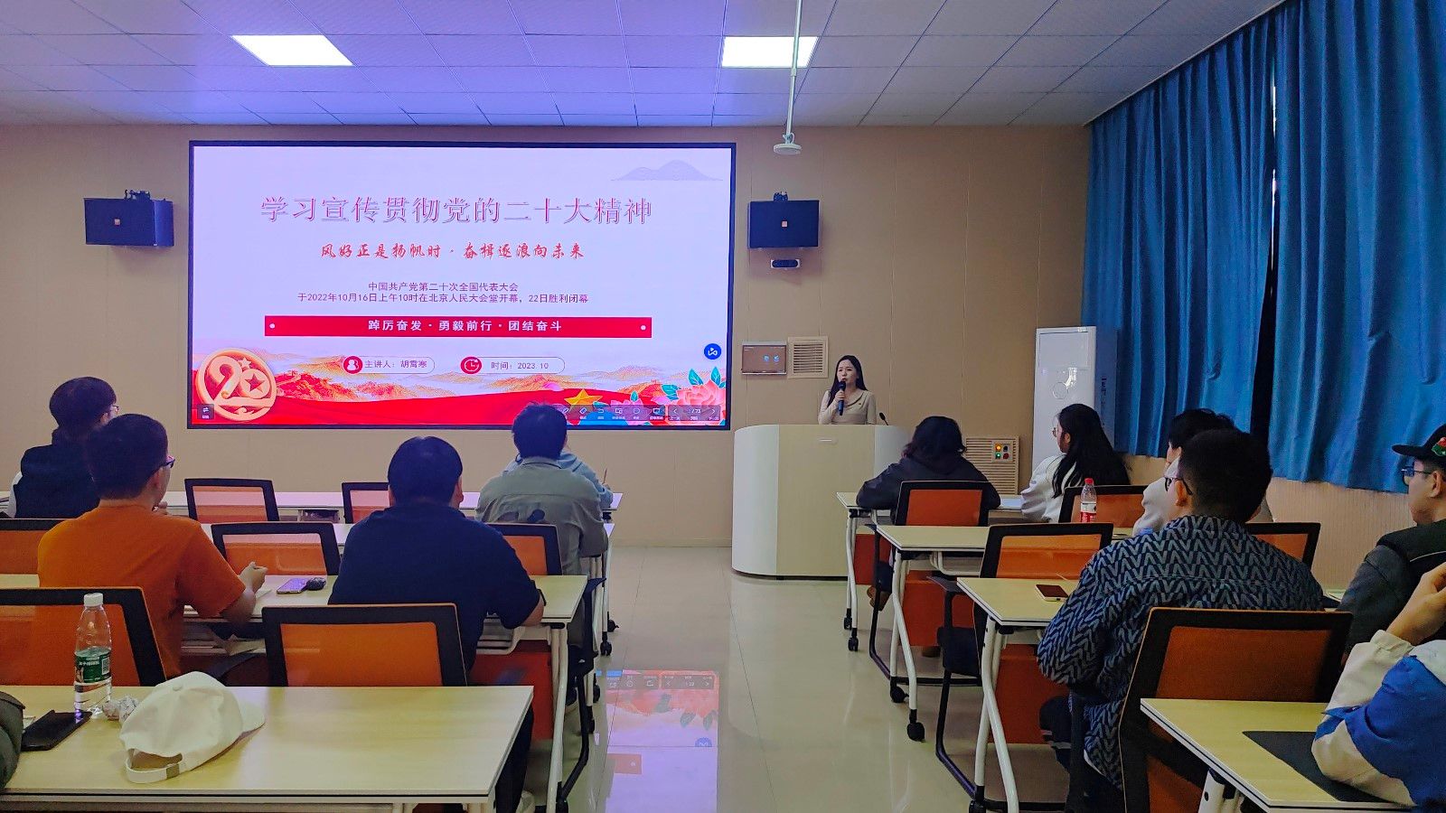 胡霄寒以“风好正是扬帆时,奋楫逐浪向未来”为主题,给入党积极分子带来了开班第一课,紧密结合党的二十大报告,从主要内容、核心要义等方面进行了详细阐述,引导学生学思践悟,深入学习党的二十大精神。她强调,车院的入党积极分子要扬帆起航、奋勇争先,始终保持不怕苦、能吃苦,不畏难、战艰难的信心,怀抱梦想又脚踏实地,敢想敢为又善作善成,成长为新时代民族汽车工业发展的坚实力量。
