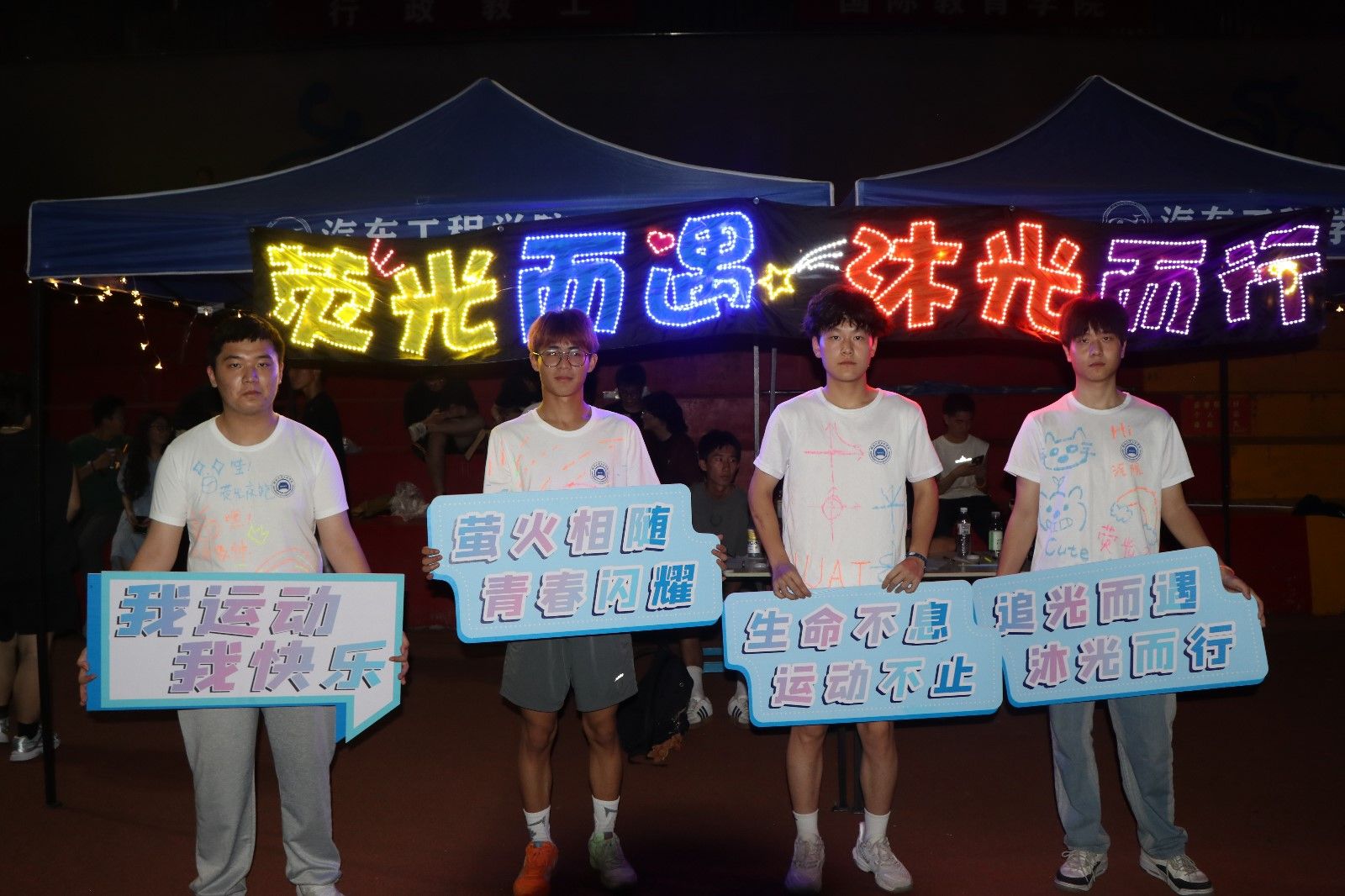 在田径场举办荧光夜跑活动,来自全院各年级200余名同学参加。