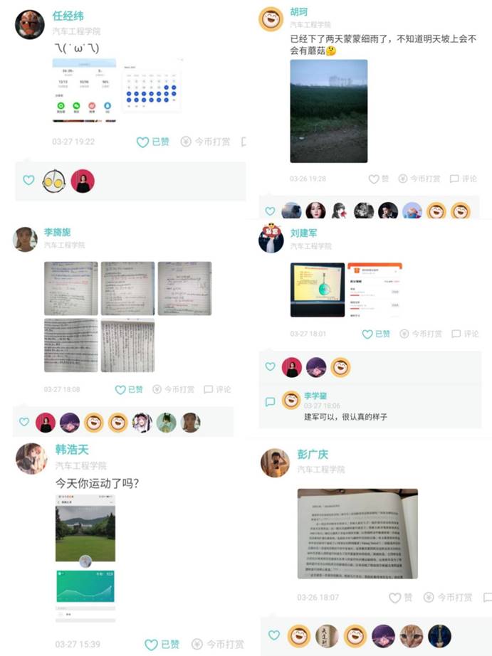 学工办于3月中旬组织开展了“打卡校园圈、秀出学习范”今日校园APP每日学习实名打卡活动,依托网络云服务将各地车院学子联系起来,打造学习圈、秀出学习范。