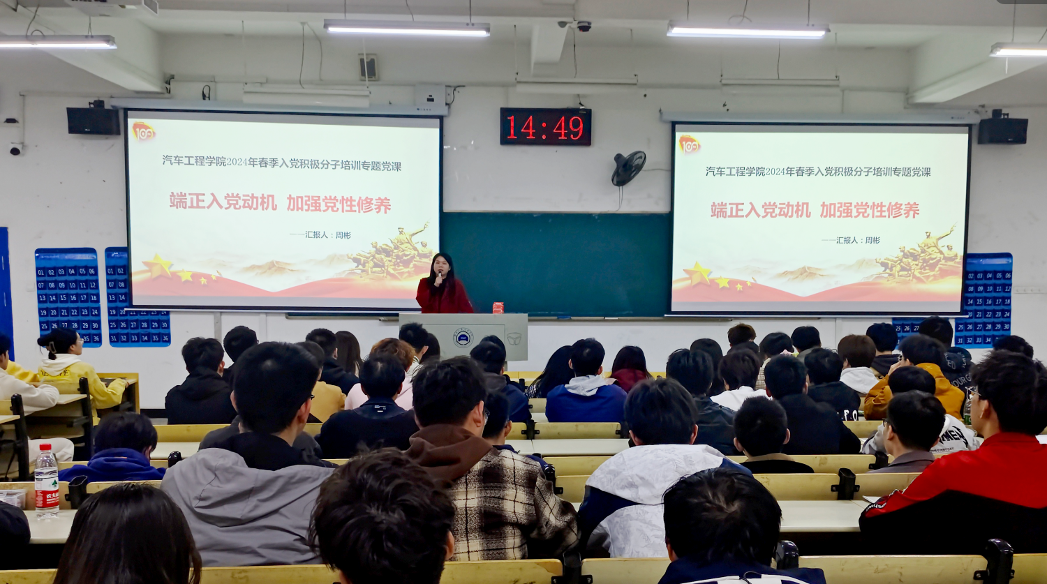 以“坚定信仰心向党 奋勇前行做先锋”为主题,举办了2024年第一学期入党积极分子培训班。学院分党委副书记周彬,学生党支部书记胡霄寒、李键雯以及全院近200名入党积极分子参加培训。