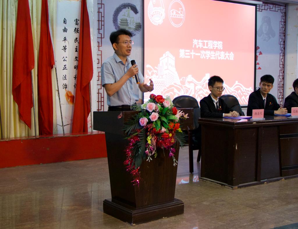 在5101报告厅隆重召开第三十一次学生代表大会,分党委书记李秀峰,辅导员李旭、李键雯老师以及一百余名学生代表共同参加了此次大会。会议由车辆203班刘伯通主持。