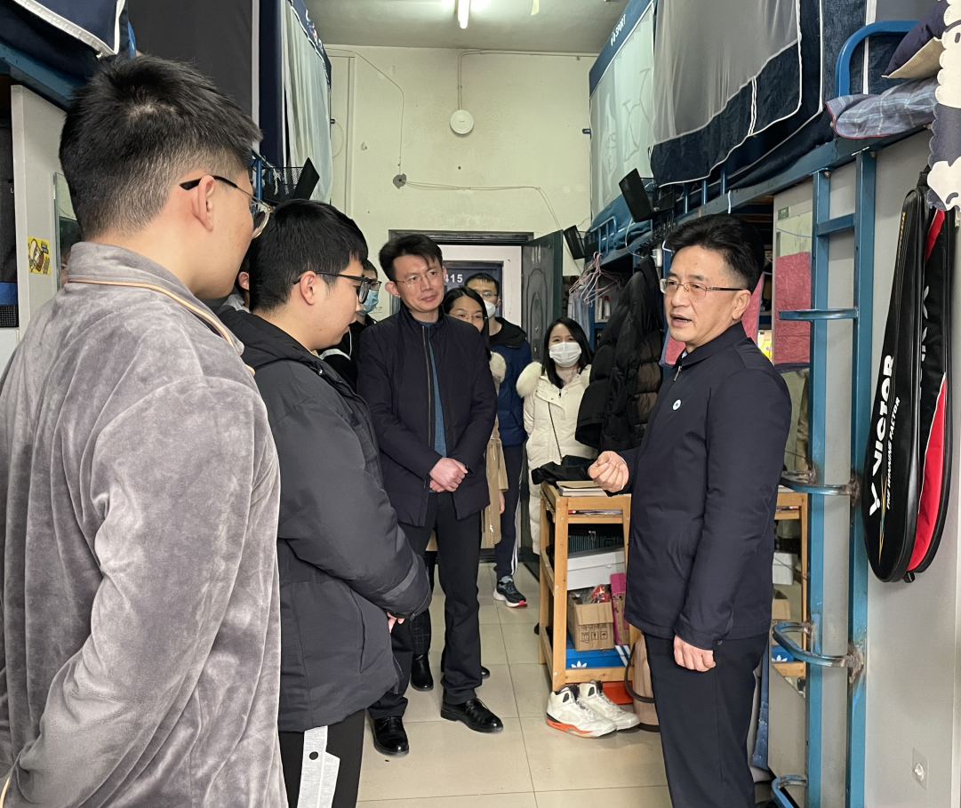 走访过程中,张文学与同学们进行了亲切交谈,详细了解学生的返校过程、适应情况等,鼓励同学们尽快调整好状态,提前做好个人学业规划,树立考研目标;他提醒同学们要注意寝室卫生,勤打扫多通风,整理好个人内务,同时暖心叮嘱大家在学习生活上遇到困难要及时与学院老师沟通反馈,学校是同学们最坚强的后盾。