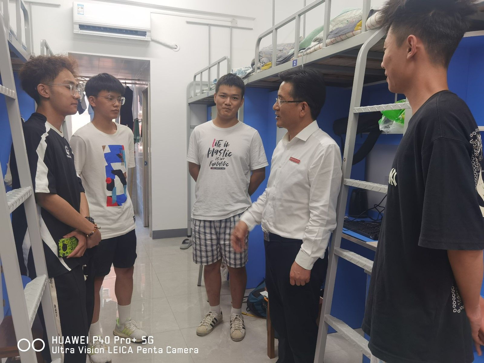 “家是哪里?”“录取的专业是不是第一志愿?”“食堂饭菜感觉怎么样?”“去梅园扩建校区看过了吗?”“对自己的大学有没有什么规划?”……在走访过程中,张文学与每间宿舍新生亲切交流,询问同学们从哪里来,了解同学们来校后的感受,对学校的印象等,并对同学们提出殷切期望:要尽快转变角色,熟悉新的环境,处理好各种人际关系,以积极的心态和良好的面貌适应大学生活;树立远大理想、做好学业规划、掌握学业知识、练就过硬本领;培育团结友爱、积极向上的宿舍文化,人人都能做到自我管理、自我服务、自我教育。同时,张文学叮嘱新生们遇到困难及时联系辅导员、班主任,学校和学院始终作为同学们的坚强后盾,时刻为同学们保驾护航。