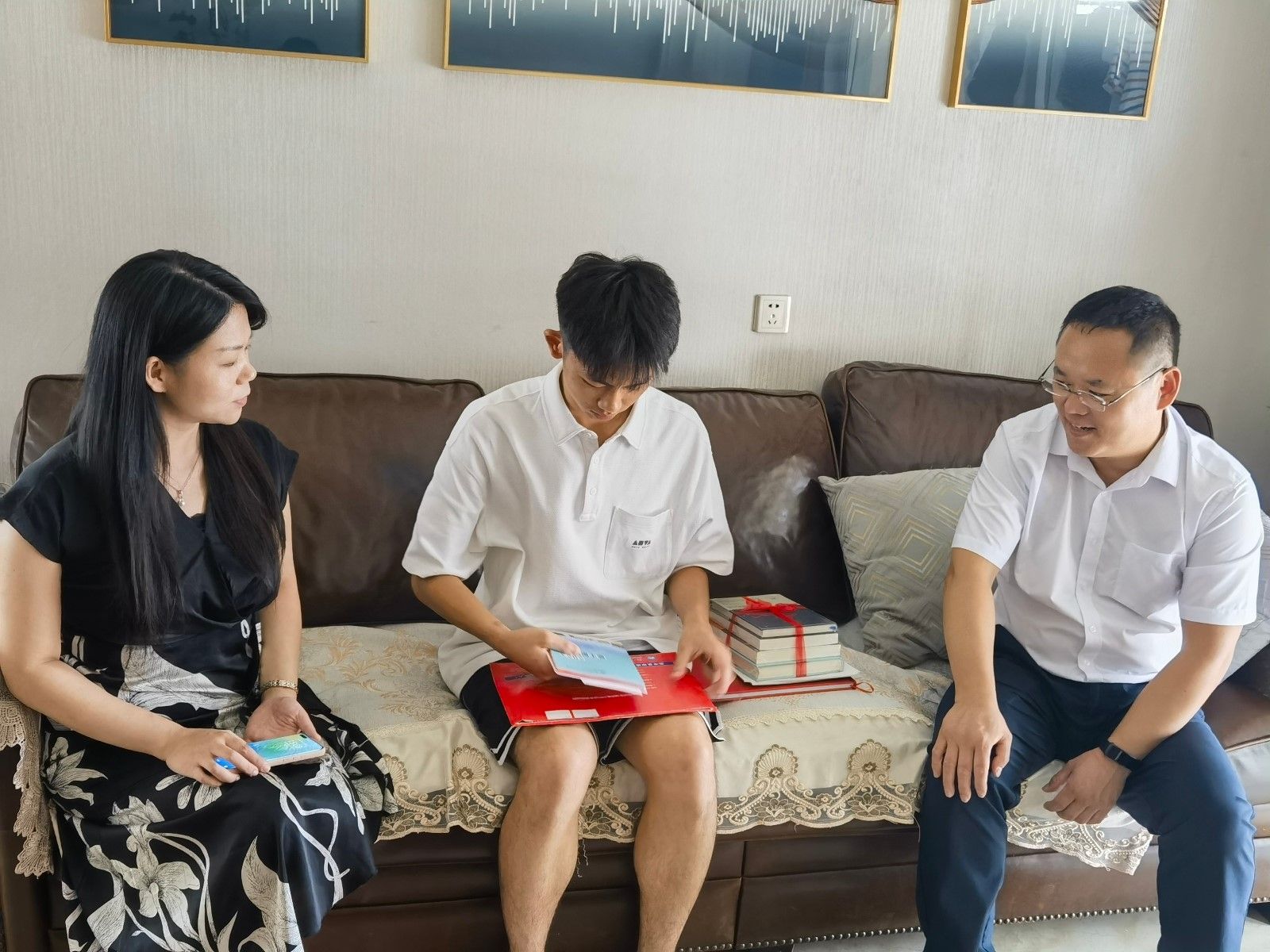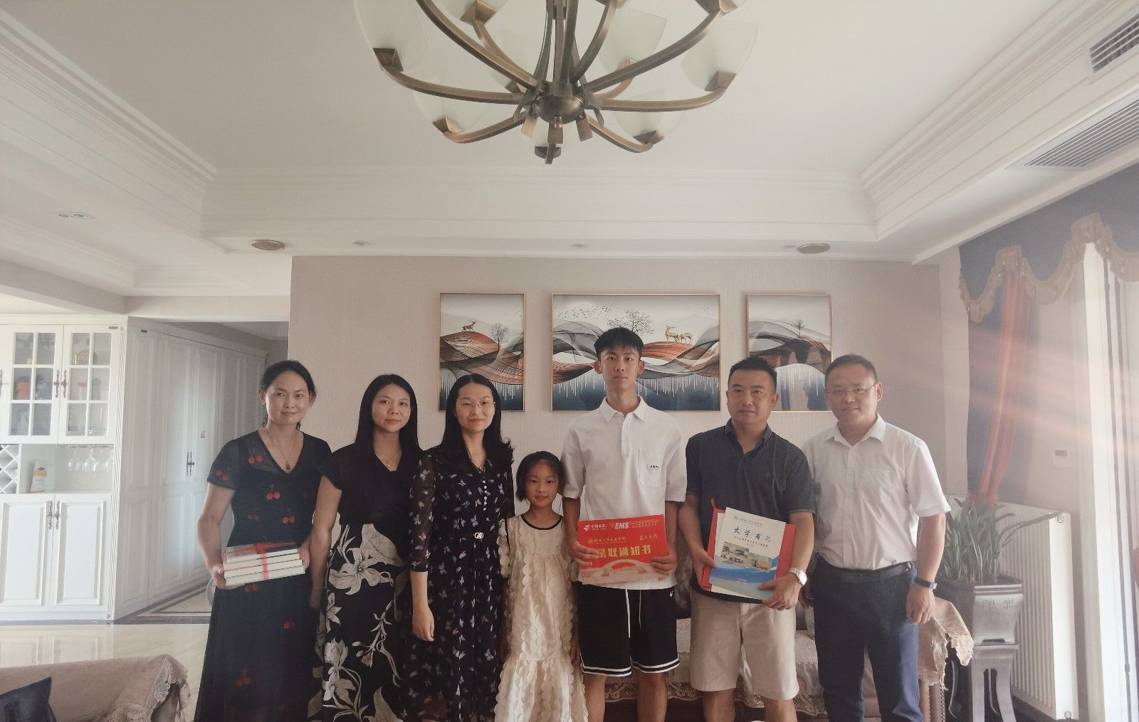 分党委副书记周彬及学院2023级新生辅导员李雅琨等一行化身“邮递员”,历时三个多小时从十堰赶到枣阳市,将录取通知书和精心准备的“大礼包”,亲手送到了麻豆在线