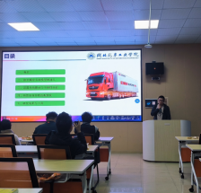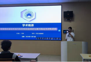 21级研究生张云飞、吕思是活动的主讲人,分别作了主题为“商用车驾驶室悬置系统参数匹配与优化”和“轮毂电机驱动半挂汽车列车轨迹跟踪与横向稳定性控制研究”的报告。