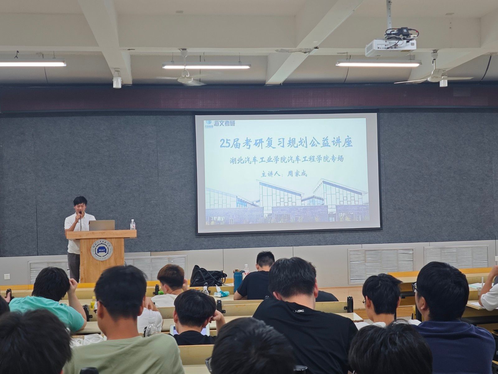 学院随后邀请到海文考研指导师周家成为参会学生做考研复习规划讲座,以其丰富的考研辅导经验,结合车院专业情况,分析了各专业所考科目的差异,多角度分析了考研全过程所需应对的难点和重点,为同学们带来了详实的考研策略指导。