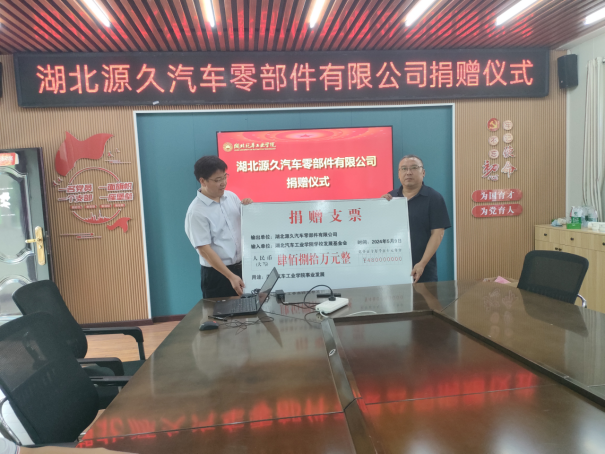 二楼会议室举办了湖北源久汽车零部件有限公司向学校捐赠480万元的捐赠仪式。湖北源久汽车零部件有限公司总经理陈宏煌、麻豆在线