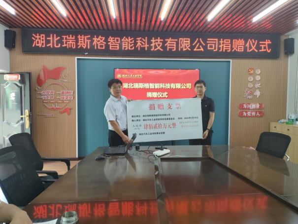 二楼会议室举办了湖北瑞斯格智能科技有限公司向学校捐赠420万元的捐赠仪式。湖北瑞斯格智能科技有限公司总经理肖才军、麻豆在线