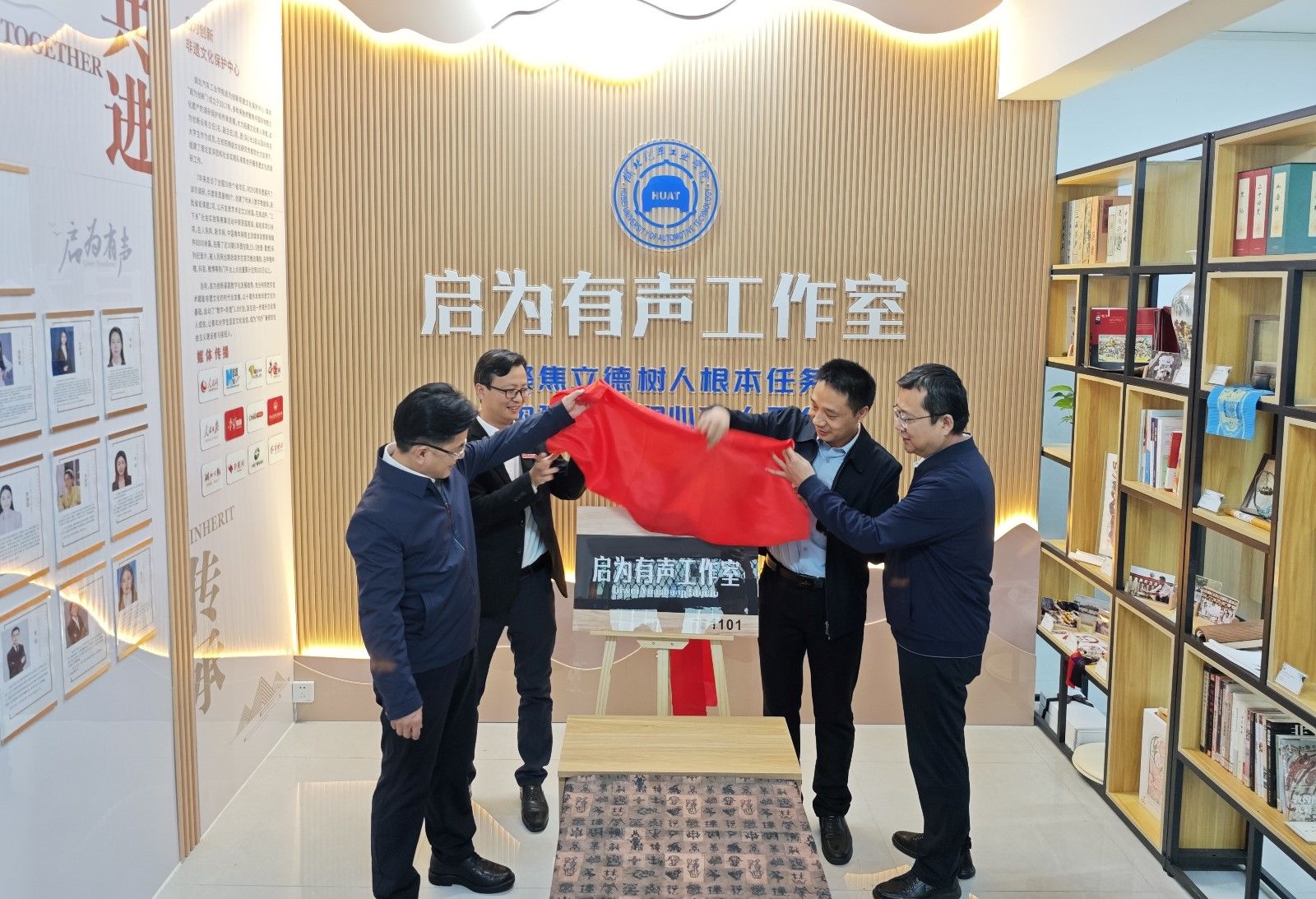 张文学、王文山等对工作室的建设效果给予了高度评价,围绕工作室的标准、规范化建设以及发展方向提出了宝贵建议和意见,随后共同为工作室揭牌。