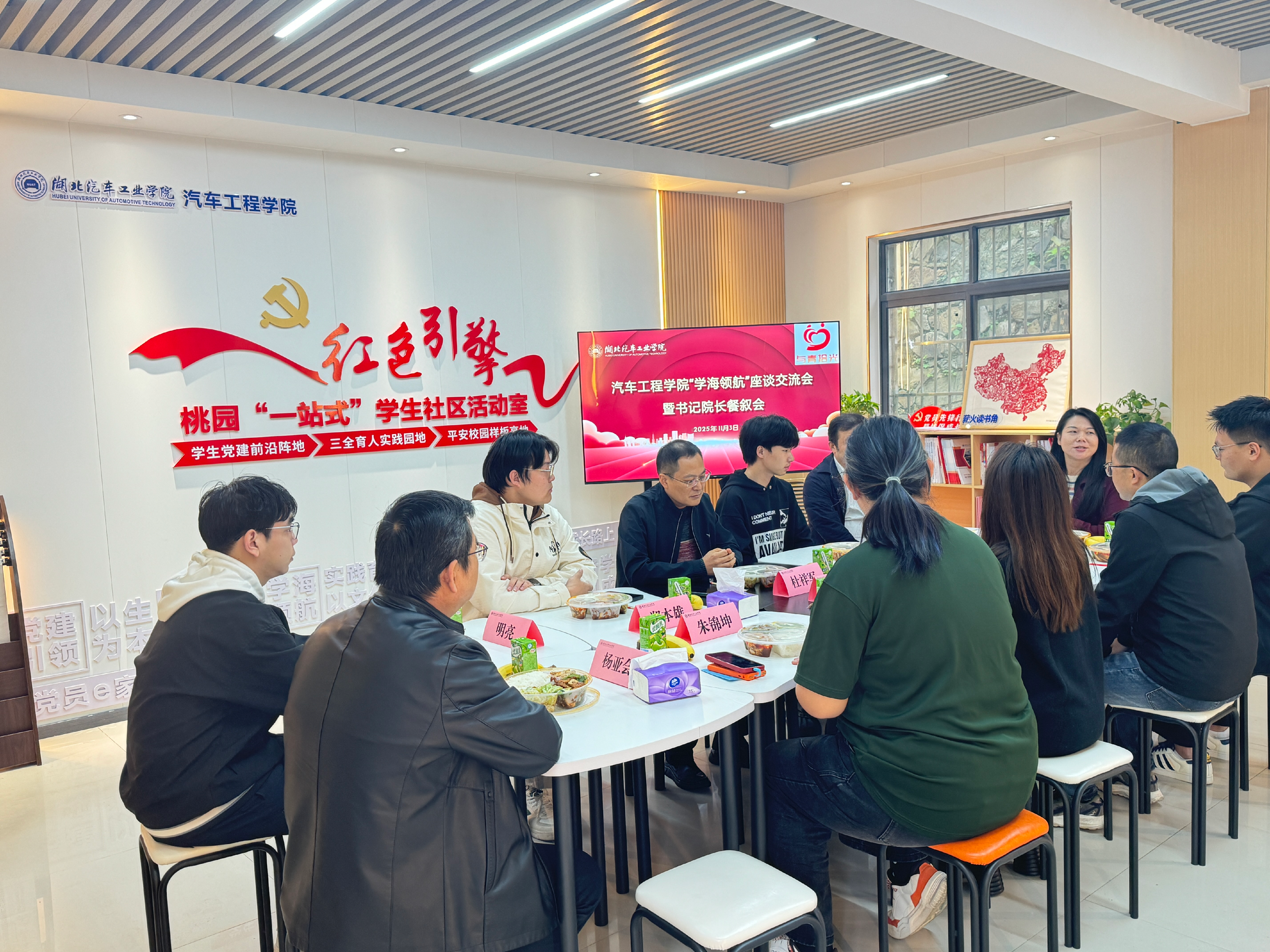 “学海领航”座谈交流会暨书记院长餐叙会在汽车大院1102活动室举行。校团委书记杜祥军、副书记胡霄寒、科发院副院长杨正才、双创学院副院长焦建杰、麻豆在线