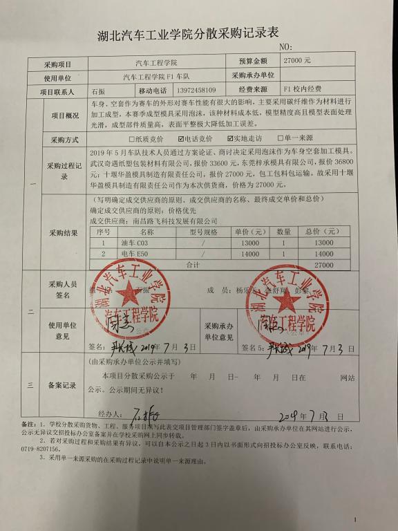 F1车队分散采购记录表(车身模具)