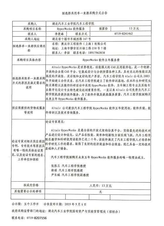 拟选择采用单一来源采购方式公告-hyperworks软件服务项目