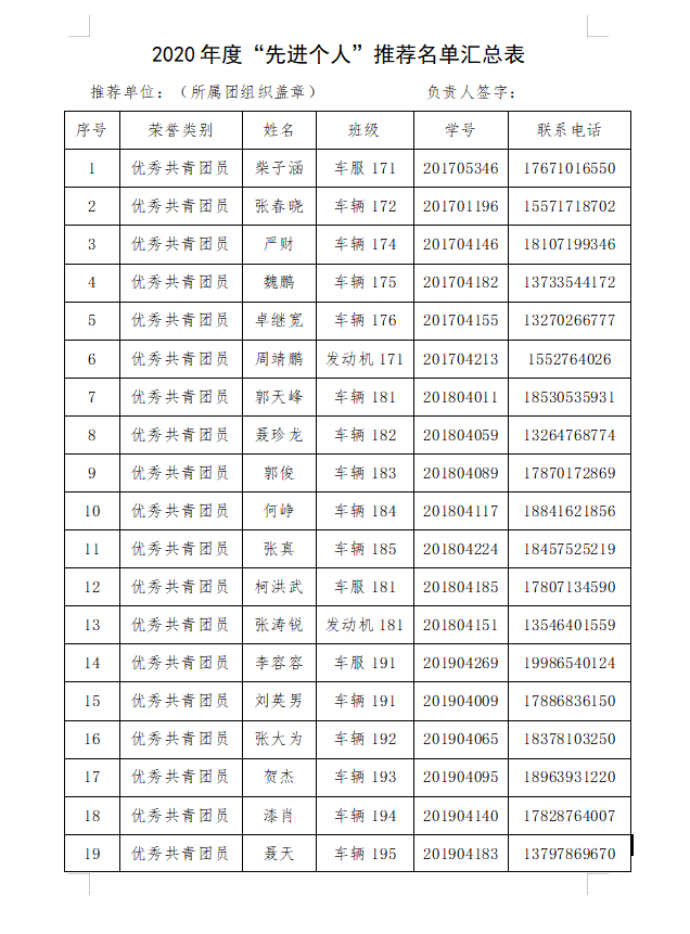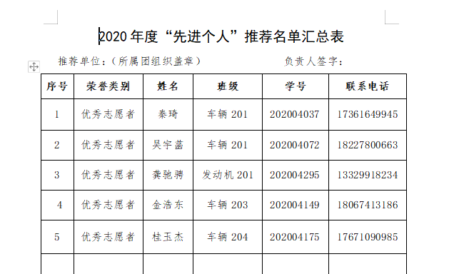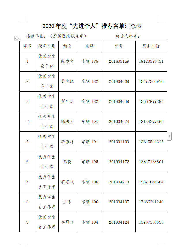 2020年度“先进个人”推荐名单汇总表-麻豆在线 学生会.docx