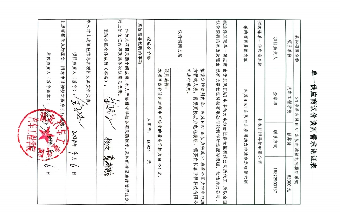 《24赛季东风HUAT车队电池箱电芯模组采购》公示