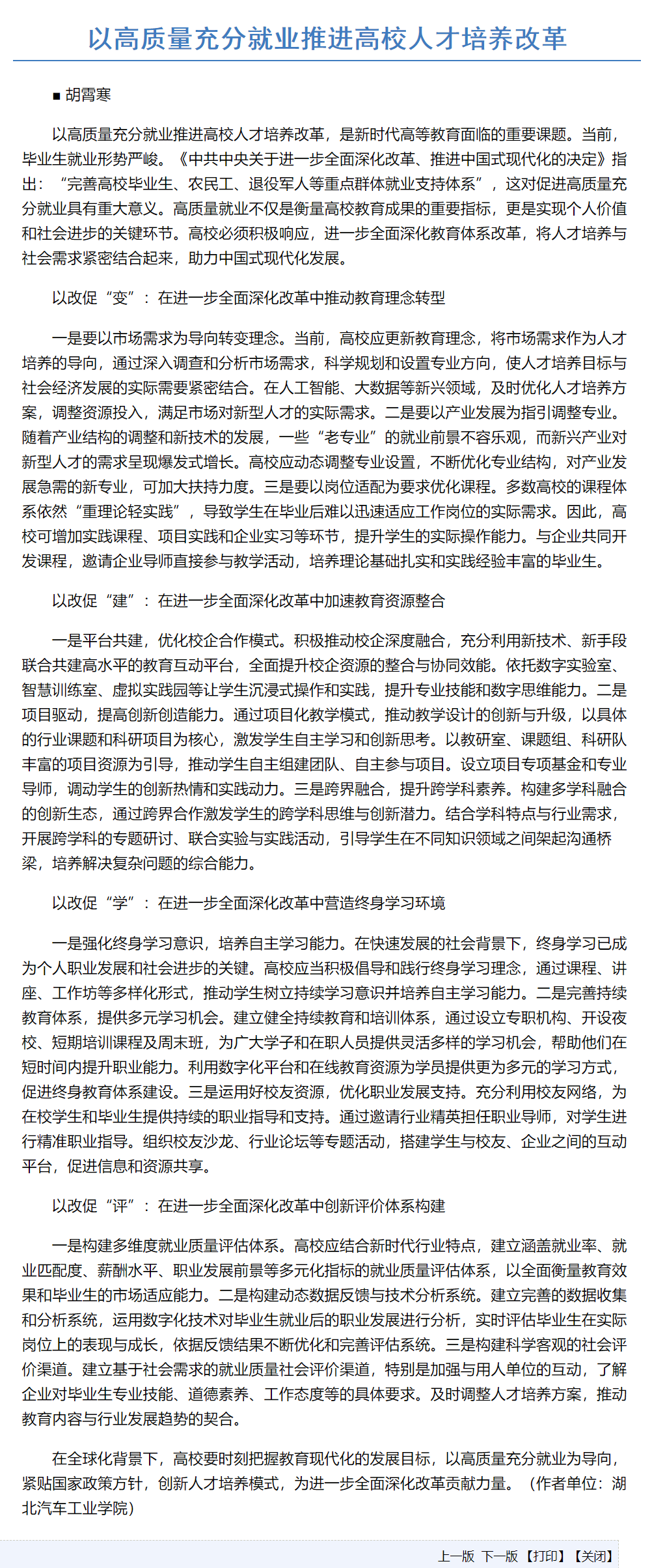 【十堰日报】以高质量充分就业推进高校人才培养改革