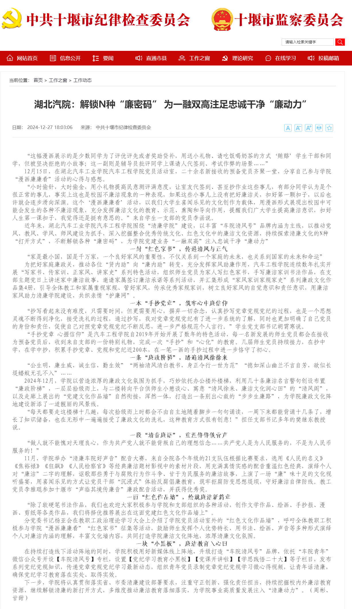 【中共十堰市纪委】湖北汽院:解锁N种“廉密码” 为一融双高注足忠诚干净“廉动力”