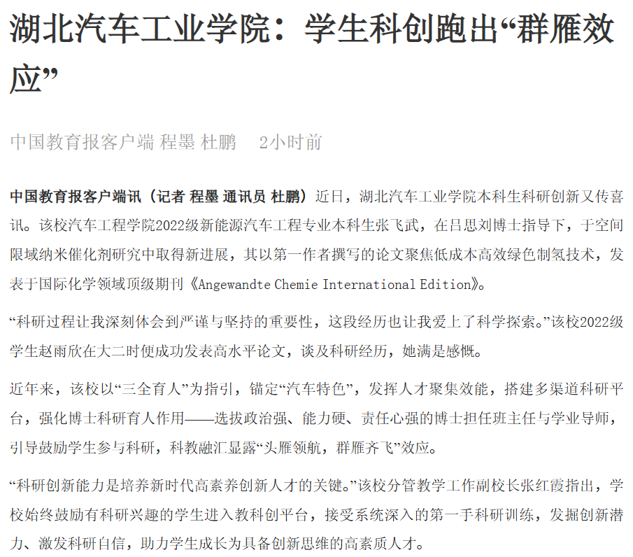 【中国教育报】麻豆在线 :学生科创跑出“群雁效应”