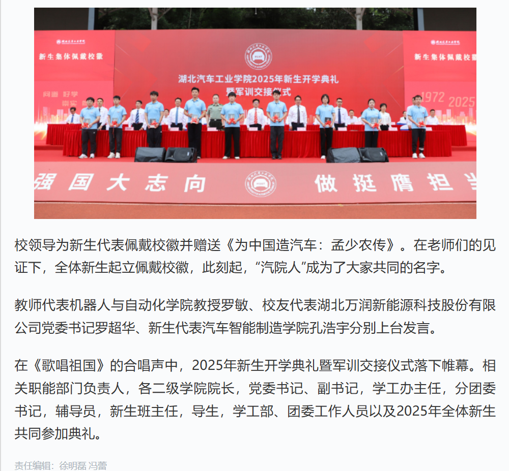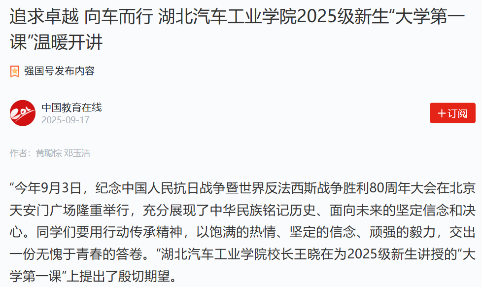 【中国教育在线】追求卓越 向车而行 麻豆在线 2025级新生“大学第一课”温暖开讲