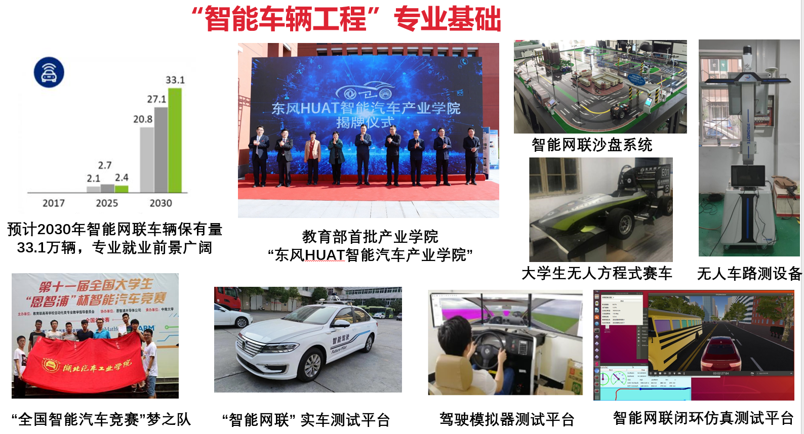 本专业依托东风汽车公司,以国家级汽车产业实验教学示范中心和国家级首批产业学院“东风HUAT智能汽车产业学院”为支撑,形成“产学互促,校企协同”的合作育人机制;以“智能模型车开发平台-智能网联沙盘教研平台-无人方程式赛车拓展平台”为代表的创新实践三平台为载体,实现了学生“基础-应用-综合”的创新实践能力培养;凸显智能车辆虚拟仿真、汽车电子与控制的专业特色,同时与注重与软件工程、电子工程等学科的交叉融合;优化课程体系,以科研促教学,实行模块化教学,培养工程实践能力强、具有创新意识的应用型专门人才。