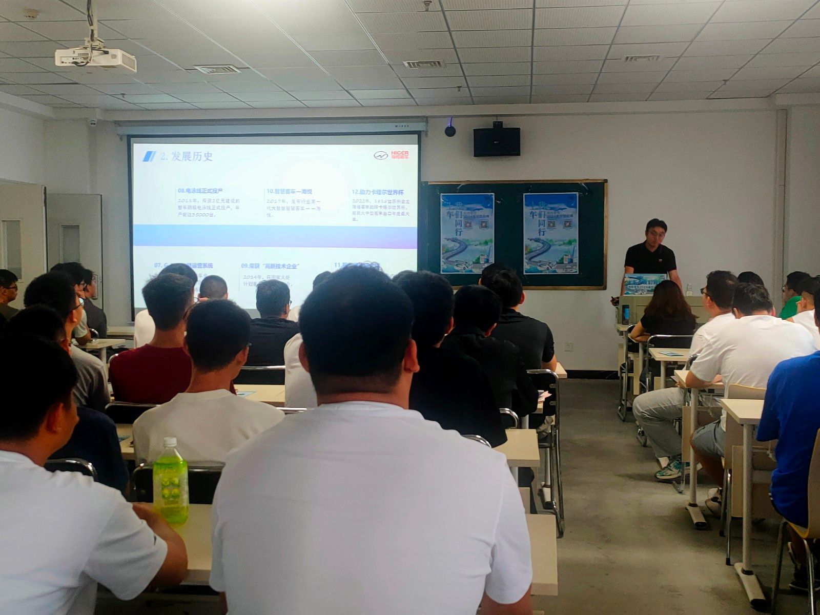 两场宣讲会现场均座无虚席,两家企业的招聘负责人向同学们详细介绍了企业的发展历程、校招生入职后的晋升通道、企业的薪酬福利和本次招聘的岗位需求等信息。宣讲现场,两家用人单位都不约而同地介绍了汽院代表校友在企业的工作情况。