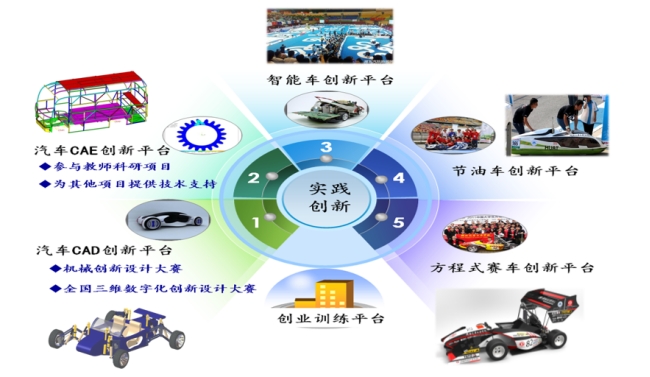 本专业拥有“东风HUAT智能汽车国家级现代产业学院”、“国家级汽车产业实验实训教学示范中心”和“湖北省汽车工程大学生实习实训基地”等平台,实践条件优越。结合大学生方程式赛车、恩智浦智能车竞赛、大学生机械创新大赛等双创平台和往复小车设计等课程实训模块,构建了丰富的校内实践平台;依托十堰市众多汽车零部件企业和东风商用车等资源及区域优势,拥有优越的企业实习平台;与AVL-List、Altair、MATHWORKS等国际软件公司成立了多个联合实验室和工程软件应用中心,为学生提供了全方位的数字化设计与分析平台。