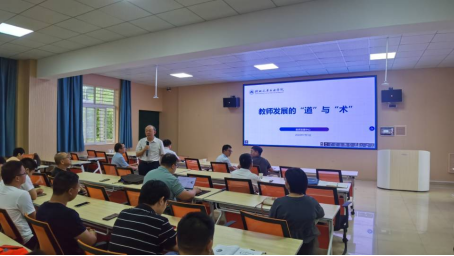 会上,郭一鸣教授首先对汽车工程学院教师发展分中心的成立表示祝贺,并以“教师发展的‘道’与‘术’”为主题做了专题讲座。讲座围绕大学教学的五个层次展开阐述教师发展内涵建设:“1个中心、2个平台、3个周期、4维支撑”,多读书,做好课程思政,努力成长为“五个一”优秀教师。