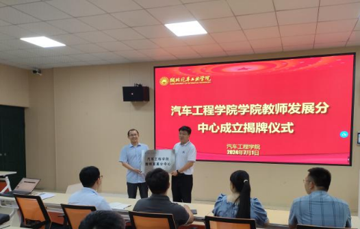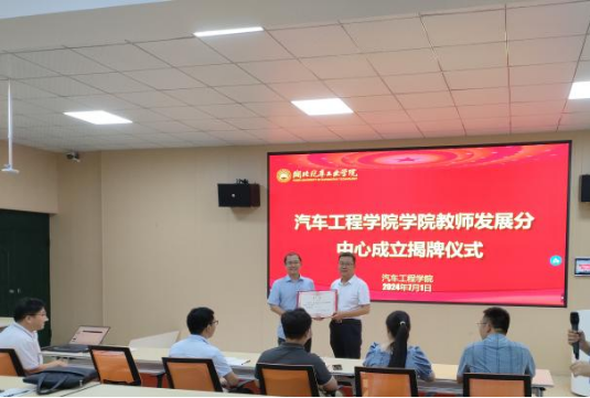 董焱章副院长宣读了《关于成立汽车工程学院教师发展分中心的通知》(车院院发〔2024〕6号),随后由胡明茂院长与郭一鸣教授共同为学院教师发展分中心进行揭牌仪式,杨亚会书记向学院教师发展分中心特聘顾问郭一鸣教授颁发聘书。
