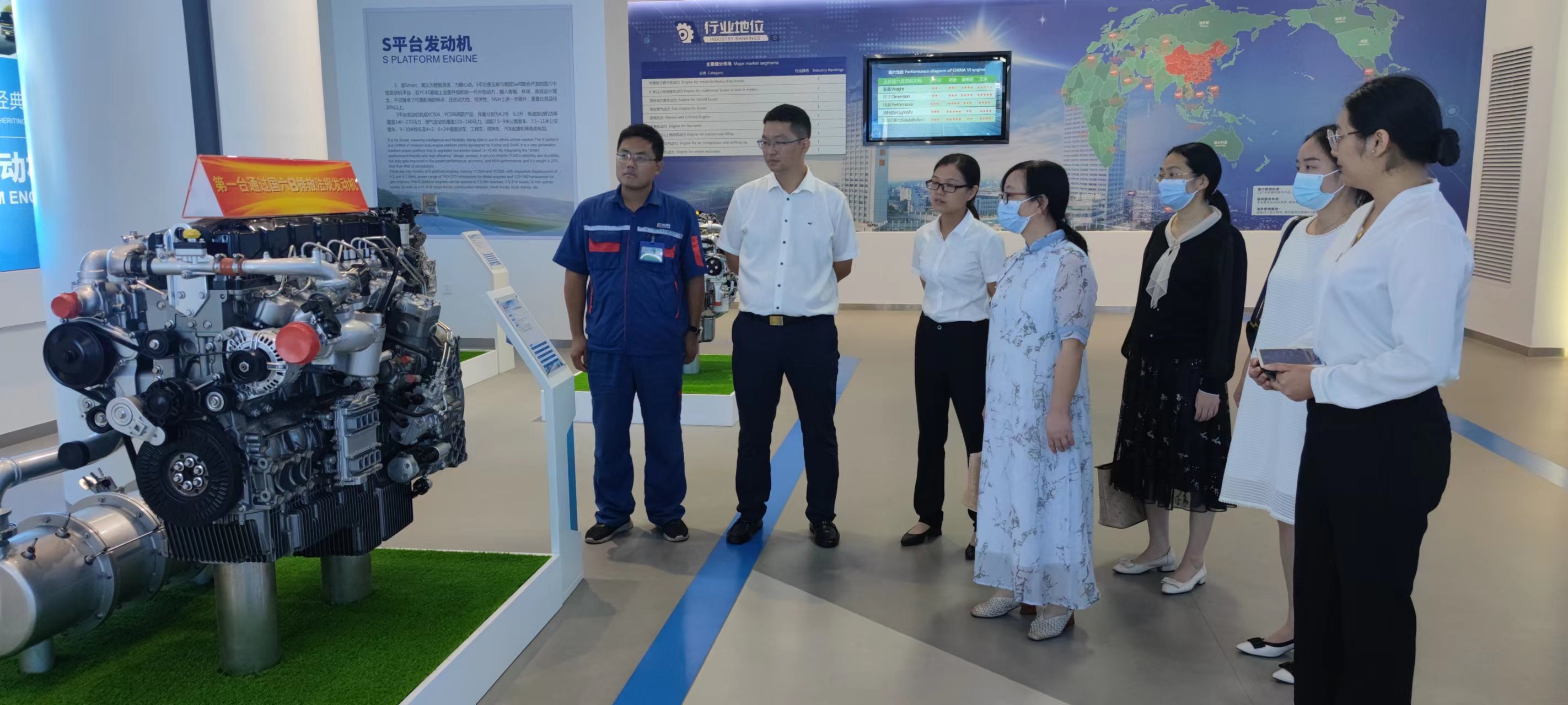 冯樱一行在玉柴营销公司服务与渠道部副总经理孙柏林的陪同下,依次参观了玉柴工程研究院试验中心、“五发车间”及玉柴科技馆,详细了解玉柴公司的发展历程以及在技术研发、大数据平台搭建、智能工厂建设等方面所取得的成就。
