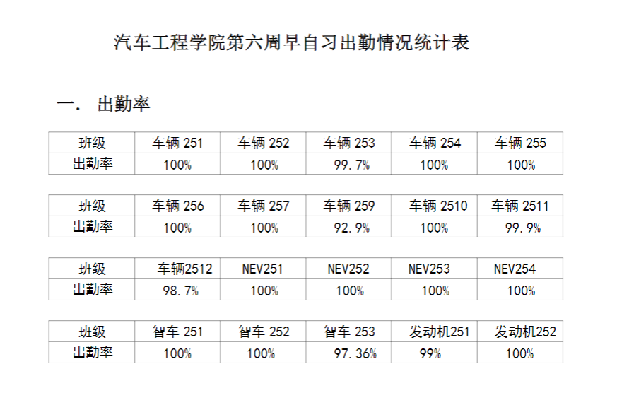 【督学正风】麻豆在线 2025-2026学年第一学期第六周早自习出勤情况