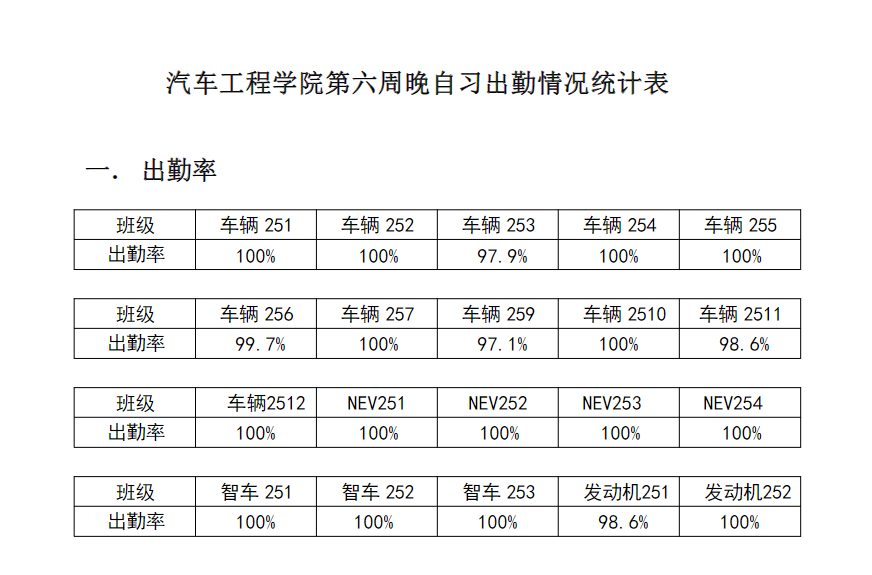 【督学正风】麻豆在线 2025-2026学年第一学期第六周晚自习出勤情况