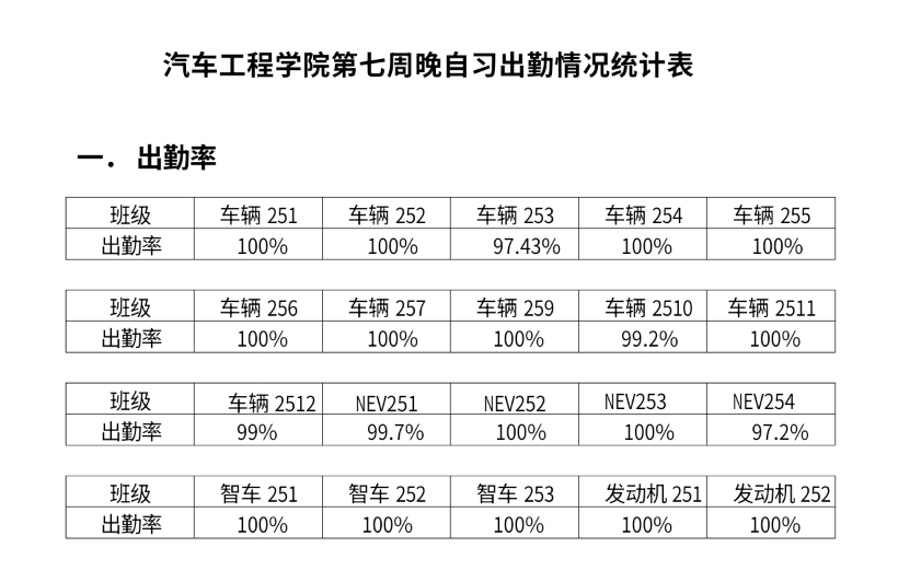 【督学正风】麻豆在线 2025-2026学年第一学期第七周晚自习出勤情况