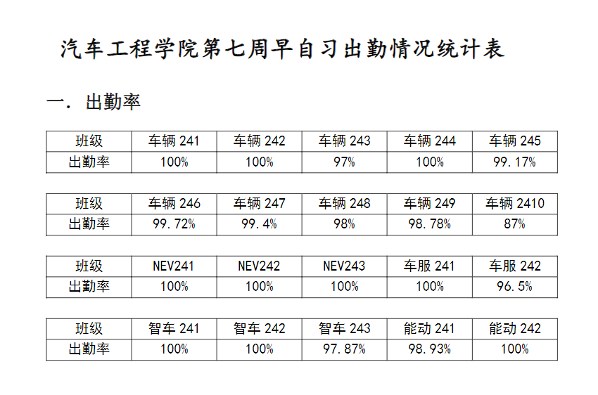 【督学正风】麻豆在线 2024-2025学年第一学期第七周早自习出勤情况